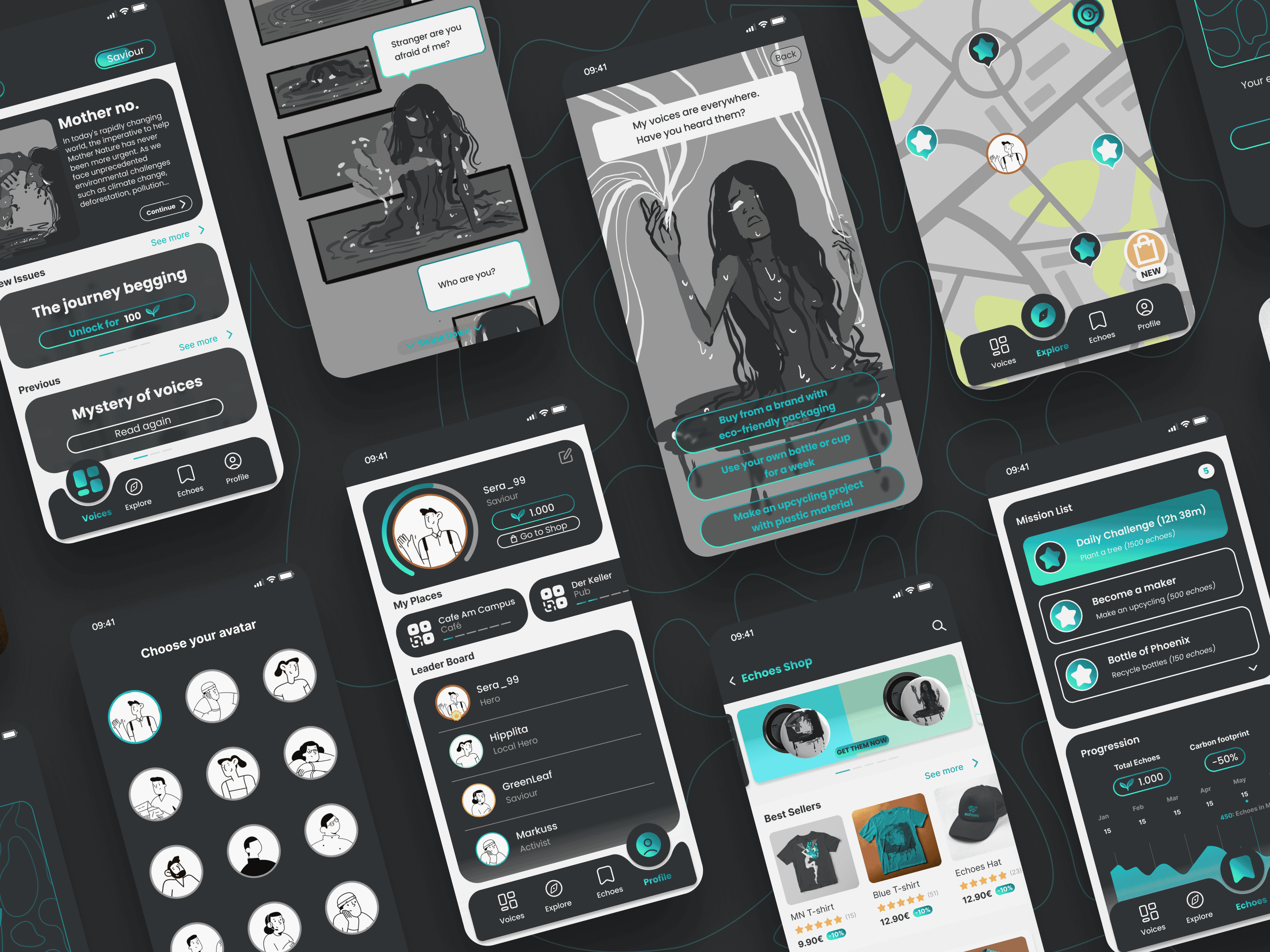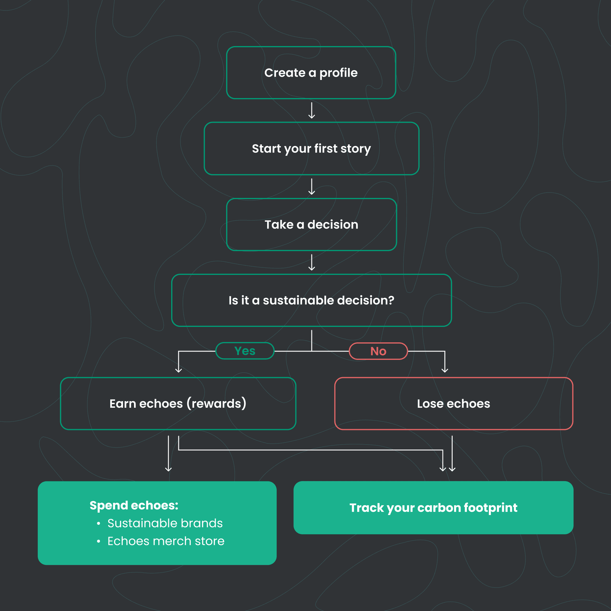 Echoes is a platform designed to harmoniously integrate ecological habits into everyday life. Targeting individuals who struggle to find time or be active, Echoes uses gamification and storytelling to make eco-activism engaging and accessible. With a participatory approach and a bold marketing strategy, the platform empowers users to adopt sustainable practices while making a tangible impact on the planet.